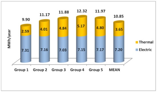 The main statistical results of each group were calculated. They were obtained for both electrical and thermal consumption and the total for each group: