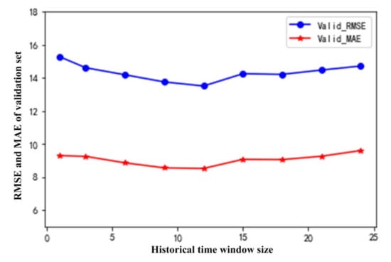 The RMSE and MAE of the LSTM verification set under different time windows.
