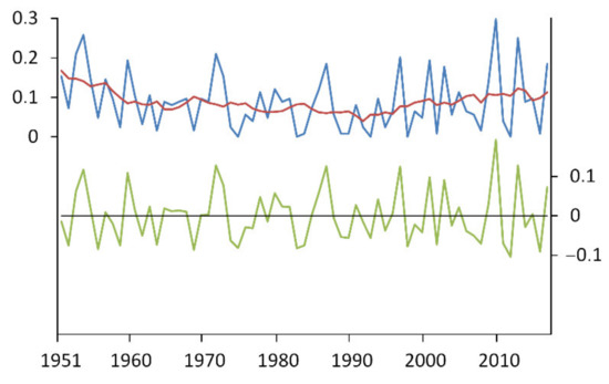 - Atlantic Multidecadal Oscillation (AMO) (https://psl.noaa.gov/data/timeseries/AMO/ (accessed on 13 September 2021);