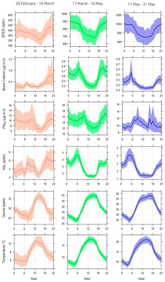 - Jiang, Z.; Grosselin, B.; Daële, V.; Mellouki, A.; Mu, Y. Seasonal and Diurnal Variations of BTEX Compounds in the Semi-Urban Environment of Orleans, France. Sci. Total Environ. 2017, 574, 1659–1664. [Google Scholar] [CrossRef] [PubMed]