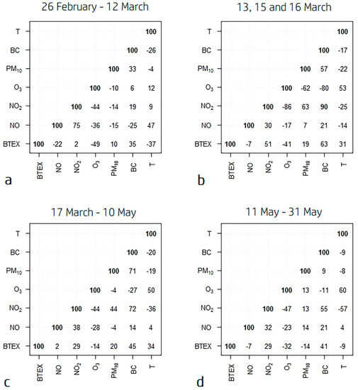 - Briz-Redón, Á.; Belenguer-Sapiña, C.; Serrano-Aroca, Á. Changes in Air Pollution during COVID-19 Lockdown in Spain: A Multi-City Study. J. Environ. Sci. 2021, 101, 16–26. [Google Scholar] [CrossRef] [PubMed]