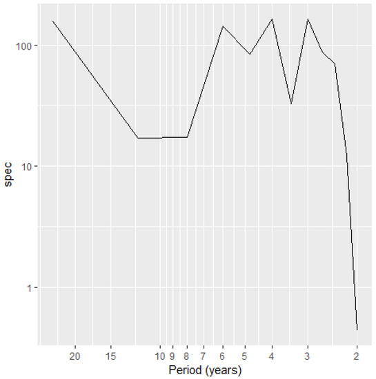 Power spectral analysis of total annual frequency (day) of BSL from the year 1998 to 2018.