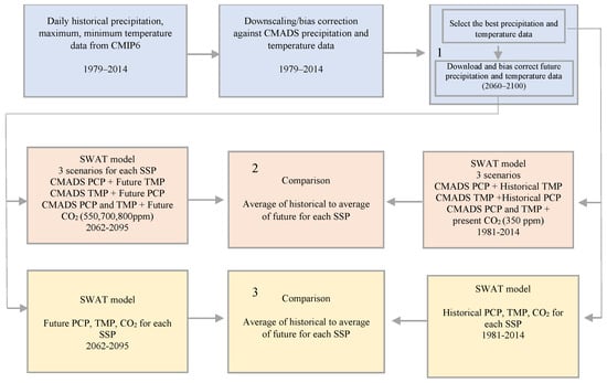 Workflow diagram of the evaluation of the impacts of future climate change.
