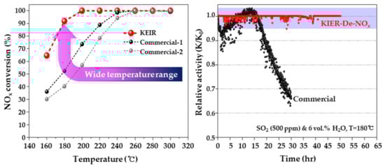 KIER catalytic activity and SOx resistance over a wide temperature range (reprinted from [] under the Creative Commons Attribution 4.0 License).