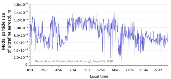 Daily course of modal particle size of ultrafine aerosol in Maloye More area, 1 August 2020.
