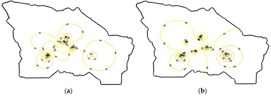 where is the number of points for interpolation, and is distance between the th interpolation point and the jth air pollution measurement station. Then, based on Equations (14) and (15), the concentration values at the th interpolation point is estimated as: