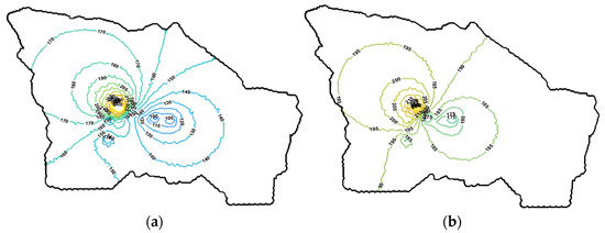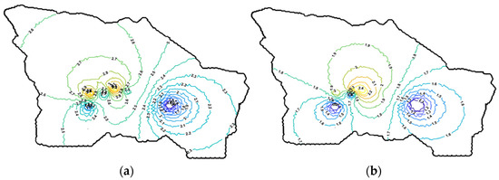 The results of Equation (18) are expressed in Figure 10, Figure 11 and Figure 12, corresponding to the integrated values in Table 2; 1 February and March for and , and 11 January for were selected, respectively.