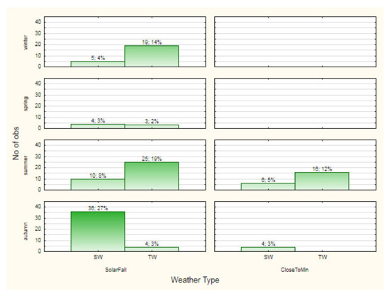 - In order to avoid the error of paragraph 5, we investigate the medical data—prepared in the above way—of the conditions of specific terrestrial seasons, taking into account the fact that the time interval of a particular calendar season of a particular year is already inside the time interval of a specific phase of the solar activity (also in the case when this phase is transitional). We consider it suitable to conduct research within each of the investigated groups and permit ourselves to combine only the conclusions. It should be noted that, in this way, the value of small samples increases significantly (and such inevitably occur with a large number of signs of division of a general sample into statistically homogeneous groups). However, the advantage of this procedure is in the implementation of the basic rule of the statistical research—the keeping of the conditions set unchanged during the repetition of the experiment as carefully as possible with the current level of knowledge. This action reduces the degree of uncertainty necessarily present and therefore increases the reliability of the conclusion obtained. We consider it possible to take into account the results obtained when comparing even the minimum number of groups (two to three people), since the formation of typical samples ensures uniformity in the characteristics that form the type, and, consequently, categorization within such a sample if based on the magnitude of the environmental parameter (or the behavior of this parameter) can be of great importance. At the very least, such categorization can direct further research, pointing to the possibility of a so-called subtle effect, the presence of which will be possible to prove with an increase in the sample size in a future study. In other words, if people of the same sex, the same age and the same diagnosis have “changes in the human body”, let us look for the reason for such changes in the state of the environment at the time of registration of the medical indicators. It should be noted that we should not forget about the unaccounted-for (due to their non-manifestation in a particular experiment) individual features of the studied human organisms. These undetected features have a share in the inevitable uncertainty present in the derivation of any result.