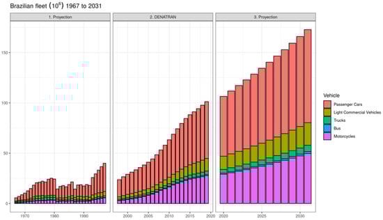 - Departamento Nacional del Transito. (Denatran) Frota Nacional (2017); Goverdo Federal do Brasil. 2017. Available online: https://www.gov.br/infraestrutura/pt-br/assuntos/transito/conteudo-denatran/frota-de-veiculos-2017 (accessed on 21 December 2021).