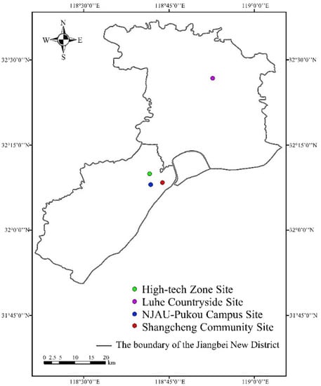 Spatial distribution of four ambient air quality monitoring sites in Jiangbei New District.