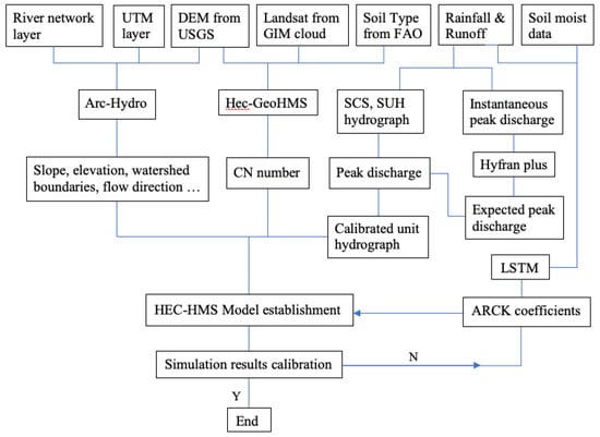 Moreover, the underground water utilization which might have an impact on the soil moisture was considered; however, it was not considered as it was negligible. In this watershed, due to abundant rainfall and surface water resources, the drinking and agricultural water were mostly extracted from the river and reservoirs, unless in a draught situation. Moreover, due to the karst landform, extraction of groundwater may cause the land to collapse and hence it is prohibited unless especial permissions are obtained. In fact, Guilin City has a single water source which is Lijiang River supplying through four municipal water supply plants. In the water source and supply planning projects, the Qingshitan and Jinling reservoirs in Lijiang basin upstream are the emergency water source for the watershed. Groundwater is suggested to be the second emergency water resource, as backup but that is not implemented yet. Here, the natural recharge of groundwater resource is 369 million m3/year, and the exploitable groundwater resource of it is 174 million m3/year but is not being extracted. There are 151 groundwater monitoring points to monitor the water level and its quality across the watershed. The below flowchart (Figure 3) presents the steps of the methods used in this work in brief.