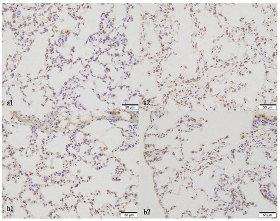 The left lungs’ tissue slices were detected by the immunohistochemical SP (streptavidin–peroxidase) method for NQO1, NRF2, and KEAP1, according to the kit (Abcam <Shanghai> Trading Co., Ltd., Shanghai, China) instructions. The slices were observed, and the optical density was detected with a microscope (OLYMPUS® biomicroscope, BX43, with OLYMPUS® Micrographic software, CellSens Dimension).