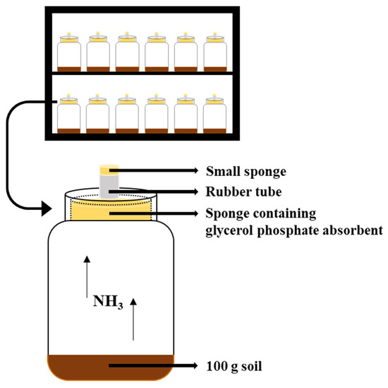 The schematic diagram of the incubation for the measurement of NH3 volatilization from soil in this study.