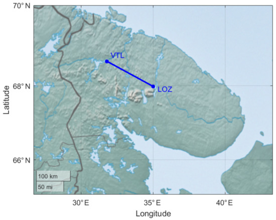Observatories at Kola peninsula for PsA observations, which are planned to be equipped with PAIPS. VTL—Verkhnetulomsky observatory, LOZ—Lovozero observatory.
