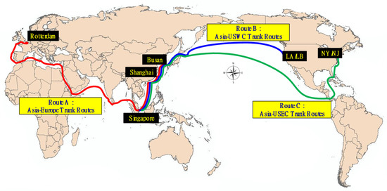 4.1. Containerized Trade on Major East–West Trunk Routes