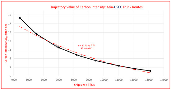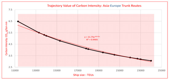 Analysis of the Carbon Intensity of Container Shipping on Trunk Routes: Referring to the Decarbonization Trajectory of the Poseidon Principle