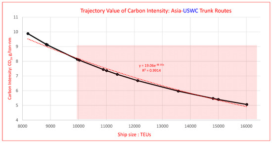 Tai, H.-H.; Chang, Y.-H.; Chang, C.-W.; Wang, Y.-M. Analysis of the Carbon Intensity of Container Shipping on Trunk Routes: Referring to the Decarbonization Trajectory of the Poseidon Principle. Atmosphere 2022, 13, 1580. https://doi.org/10.3390/atmos13101580