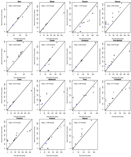 In this case, the trend slope (change per unit time) was evaluated using a simple non-parametric procedure developed by [26], according to the following expression: