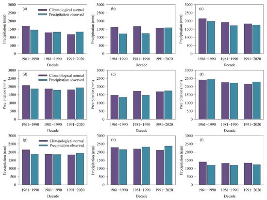 The capital Natal (Figure 3d) shows an increase in rainfall over recent decades. Despite being under the negative phase of the PDO, the 1960s had the lowest annual rainfall records. The 1970s, 1980s, and 1990s had the highest rainfall records below average (positive phase of the PDO). Corresponding to the negative phase of the PDO, the 2000s had the highest annual rainfall records, and the 2010s had high rainfall records in most years.