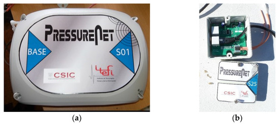 A multi-sensor system (Figure 7) designed and developed by the authors to measure differential pressures in radon gas transport studies was also used in these experiments. This system is composed of 10 pressure sensors, as described in [30]. The data are collected every 10 min.