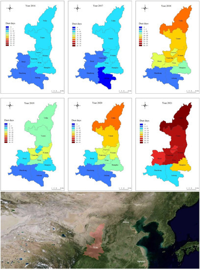 Sand affected days in Shaanxi Province from 2016 to 2021.