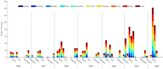 Frequency and distribution of dust weather from 2016 to 2022.
