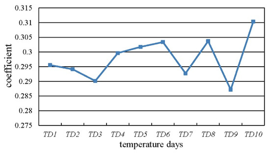 The coefficients of ten temperature categories.