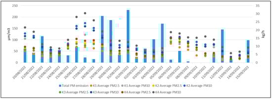 | Date | Total PM2.5,10 Emitted (kg) | Total BRT | Locations |