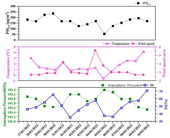 Meteorological data (air pressure, air temperature, relative humidity, and wind speed) during the sampling period were quoted from the official website of the Central Meteorological Observatory [7].