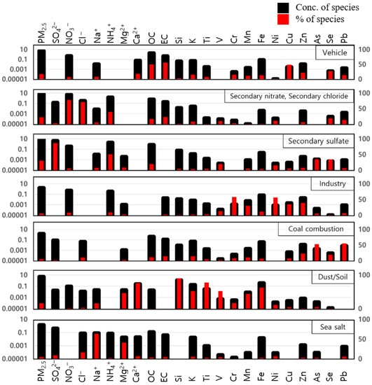 - Han, J.S.; Moon, K.J.; Lee, S.J.; Kim, Y.J.; Ryu, S.Y.; Cliff, S.S.; Yi, S.M. Size-resolved source apportionment of ambient particles by positive matrix factorization at Gosan background site in East Asia. Atmos. Chem. Phys. 2006, 6, 211–223. [Google Scholar] [CrossRef]