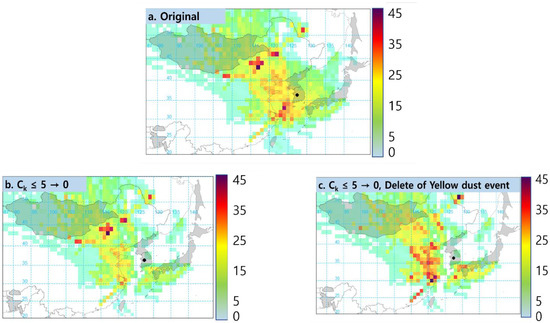 - Han, Y.J.; Holsen, T.M.; Hopke, P.K.; Cheong, J.P.; Kim, H.; Yi, S.M. Identification of source locations for atmospheric dry composition of heavy metals during yellow-sand events in Seoul, Korea in 1998 using hybrid receptor models. Atmos. Environ. 2004, 38, 5353–5361. [Google Scholar] [CrossRef]