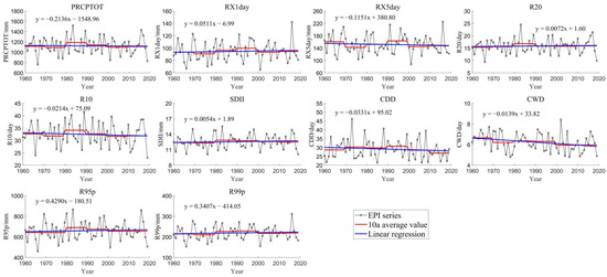 4.1. Spatial-Temporal Variations of EPIs on the Annual Scale