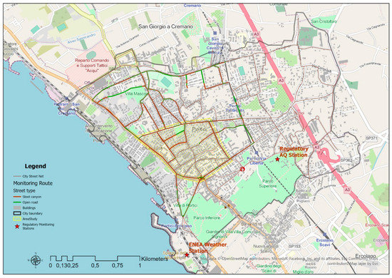 The City of Portici has been chosen because of its high population density and its complex urban canopy layer composed of numerous street canyons that promote the accumulation of traffic-induced pollution, due to their lack of natural ventilation.