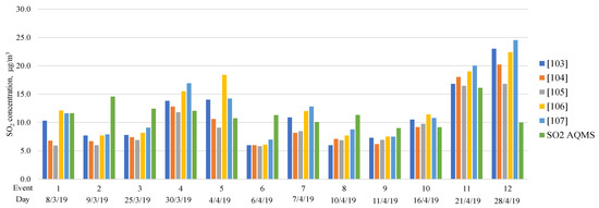 Prevalence of SO2 concentration (μg/m3) corresponding to AQMS.