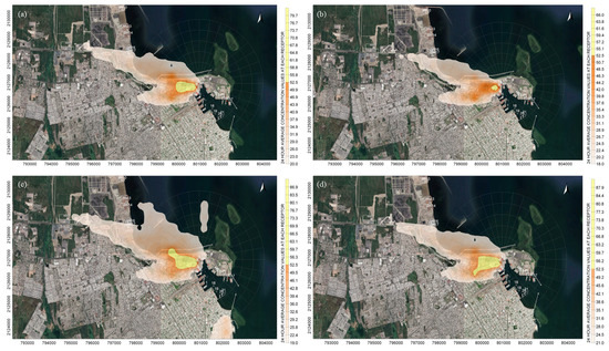 - Jahangiri, S.; Nikolova, N.; Tenekedjiev, K. Application of a Developed Dispersion Model to Port of Brisbane. Am. J. Environ. Sci. 2018, 14, 156–169. [Google Scholar] [CrossRef]