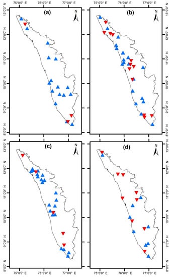 - George, J. Long-Term Changes in Climatic Variables over the Bharathapuzha River Basin, Kerala, India. Theor. Appl. Climatol. 2020, 142, 269–286. [Google Scholar] [CrossRef]