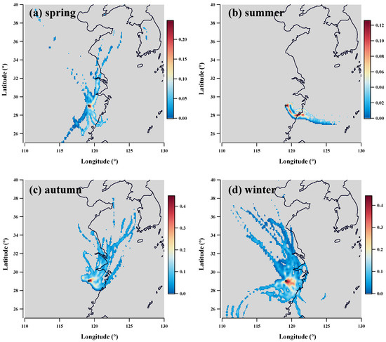 The simulation results of the WPSCF during the sampling periods of (a) spring, (b) summer, (c) autumn, and (d) winter.
