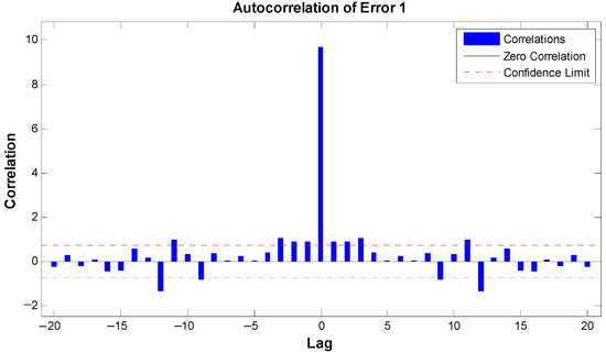 Figure 4 is the auto correlation of error in lag 0–20, and the auto correlation at lag 0 is equal to the mean squared error. So, we can know that the mean squared error is only 9.4 cm2, which indicates the predicted results agree well with the measured results