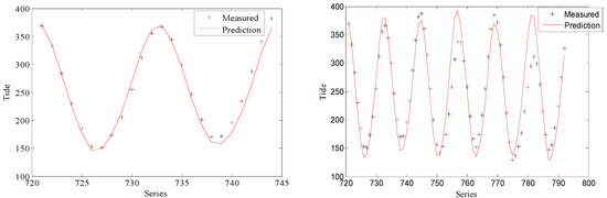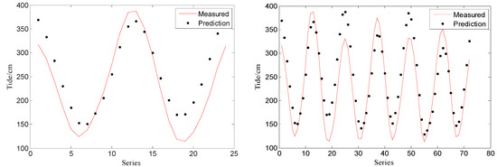 A total of 1464 data were recorded for two months from 1 September 2012 to 31 October 2012. The measured data showed that the tidal type was normal semi-diurnal tide. In this paper, the data of the previous month were selected as the experimental values, and the data of the first three days of the second month were selected as the forecast value. That means, m = n = 720, k = 72 in Equation (7).