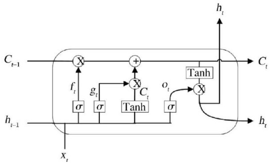 Among them, σ is the sigmoid activation function. is the current input vector, is the currently hidden layer vector, are the bias, the input weight, and the loop weight of the forget gate, respectively.