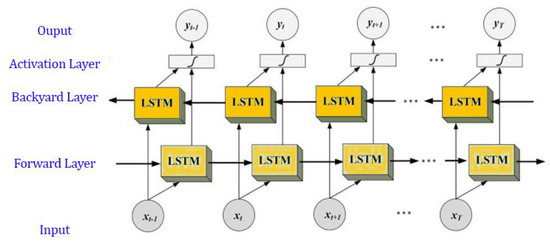 Since LSTM is unidirectional, it can only look at one side of a time-series relationship. The BiLSTM neural network comprises two LSTM neural networks, both of which receive the same input. Still, it is trained in opposite directions (forward and backward, respectively, as shown in Figure 3), with the LSTM neural network deciding on the final output in both directions.