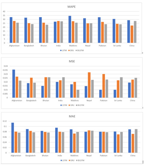 The MAE, MSE, and MAPE of South Asian Countries and China.