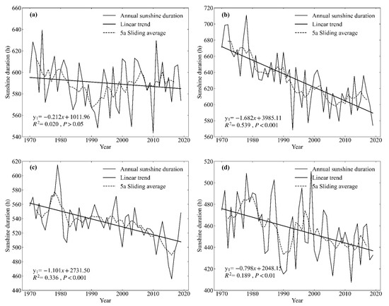 3.1. Temporal Variation Characteristics of Sunshine Duration
