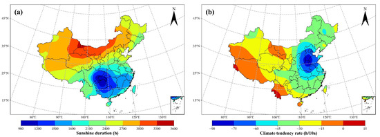 Spatial distribution of SD (a) and climate tendency rate (b) in China.