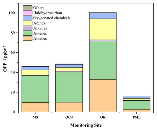 3.1.3. O3 Formation Potential (OFP) of VOCs