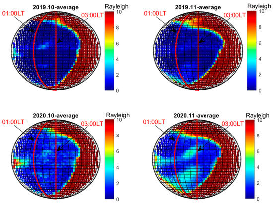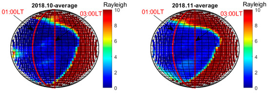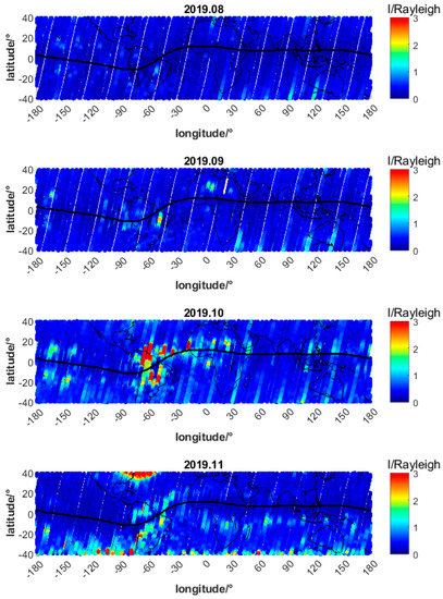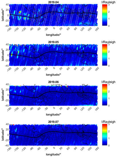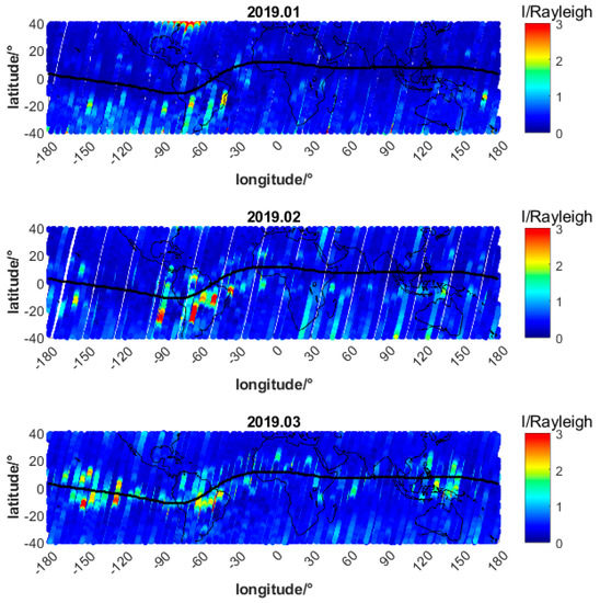 Figure 2 shows the global 135.6-nm nightglow at 2:00 LT in 2019.