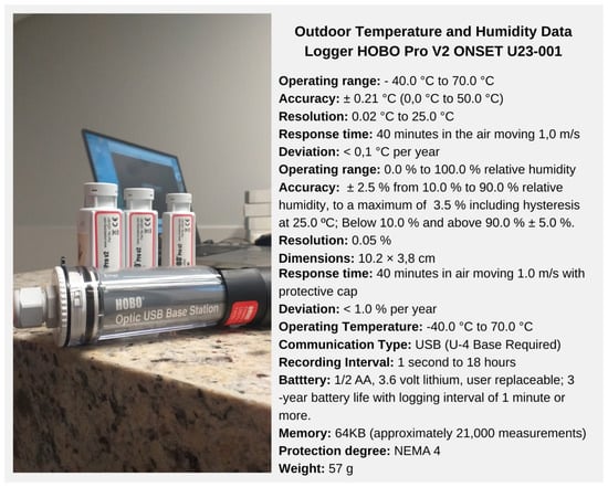Indexes of outdoor thermal comfort were used regarding environmental factors [,]. In order to carry out the measurements of Ta and air humidity, it was necessary to house the sensors to minimize the exchange of radiation []. The movement of air was measured by anemometers, accurate to variations in speed [,].