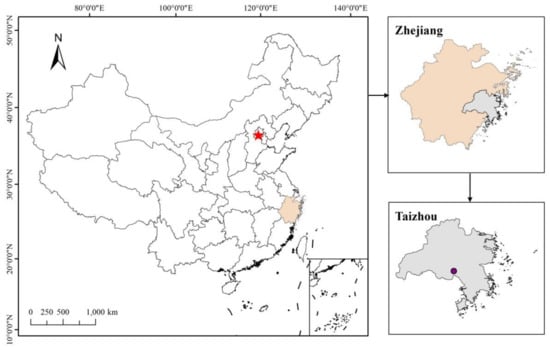 Taizhou is located in the middle of the East China Sea coast of Zhejiang province, with a population of 6.6 million and an area of 9411 km2. The sampling site (28.5994 N, 121.0954 E) is located in a rural area in the south-central part of the city, with no factories nearby (Figure 1). There is no fireworks ban here.