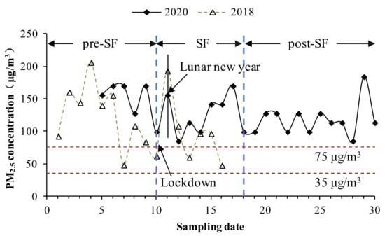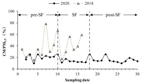 PM2.5 mass concentration during CSF in 2018 and 2020.