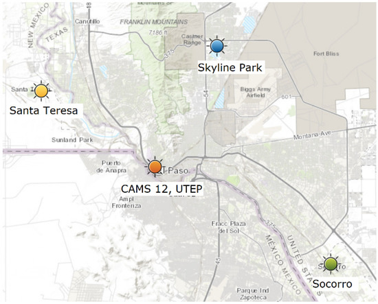 El Paso is a non-attainment city for carbon monoxide (CO) and PM, and it has several days of high PM concentration during the months from May to September. Data from urban, suburban, industrial, and rural areas were used to calculate PM precursor substances in Table 2. The data sets included both air pollutants and meteorological variables.